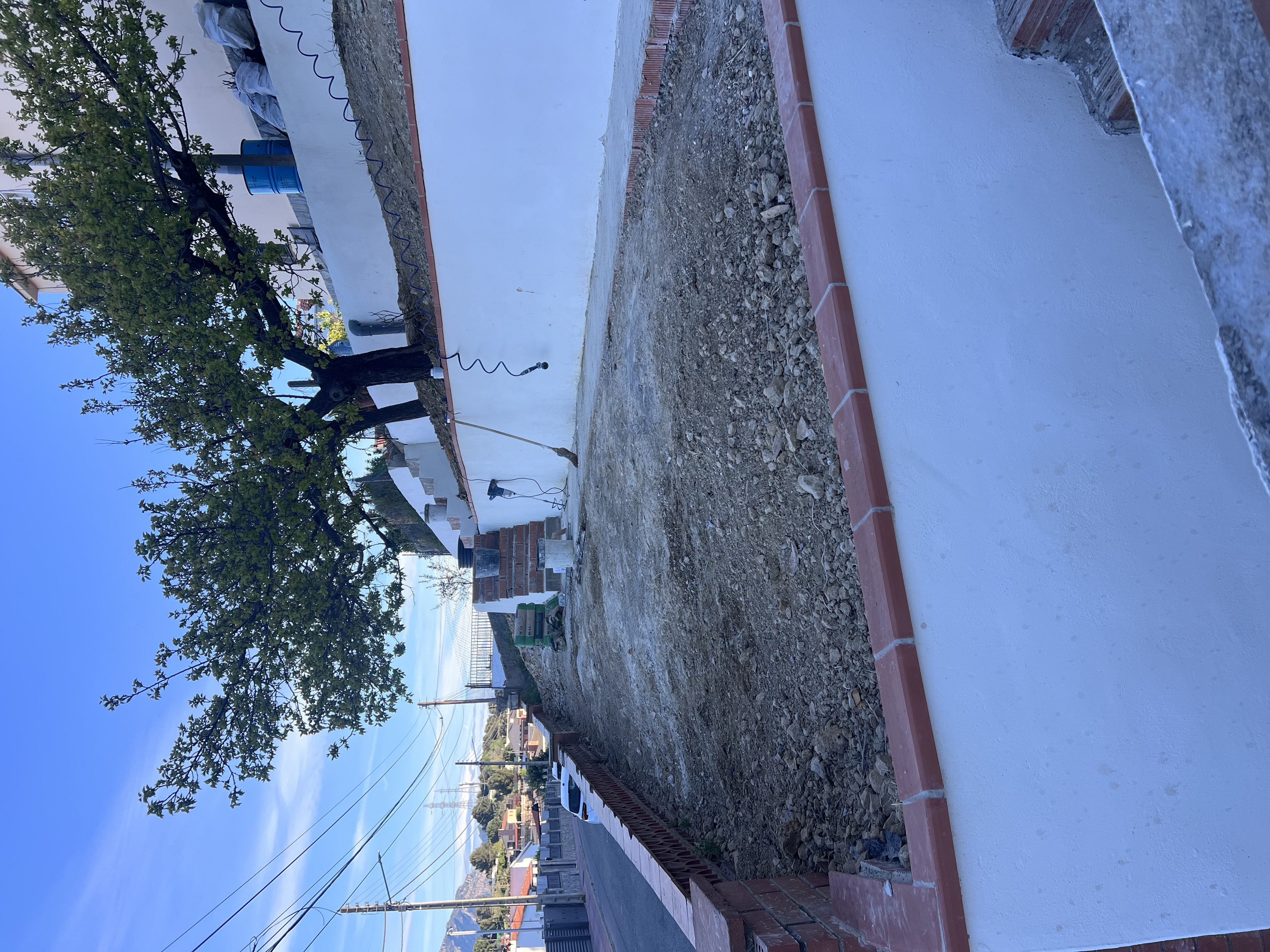 El proceso comenzó con una reestructuración profunda del terreno. Se ejecutó un muro de contención de gran envergadura para ganar metros de superficie plana y asegurar la estabilidad de la parcela. Paralelamente, se realizó un trabajo técnico crítico bajo la superficie: la renovación total de los sistemas de desagües pluviales y cloacales.